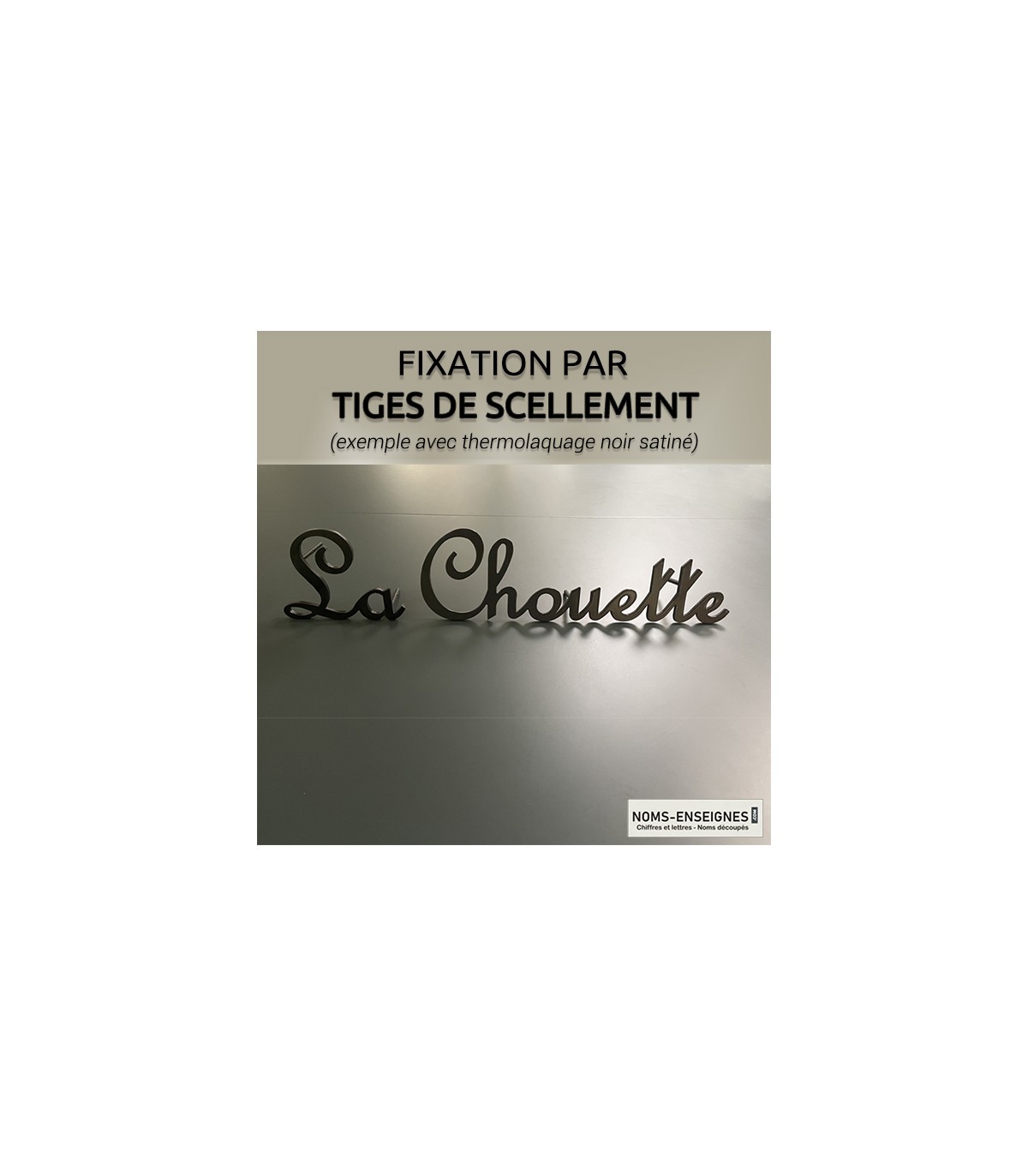 • 2°) Avec tiges de scellement (voir illustrations n°7, 8 et 9) : pour les murs en pierre de taille, un forfait tiges de scellement de 10 cm de longueur est vendu en supplément : 22,00 € par mot attaché (exemple : Soleil d'Eté = 2 mots attachés = 2 forfaits tiges de scellement) : voir fiche-article ici.